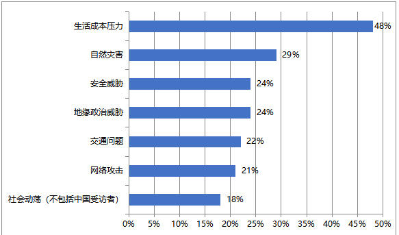 很多受访专家预测,海外社会动荡将是造成2023年生产力下降的另一个关键因素。例如,48% 受访者预测生活成本压力将影响本国员工,33%海外受访者认为当地的局势动荡将影响商务差旅人士。